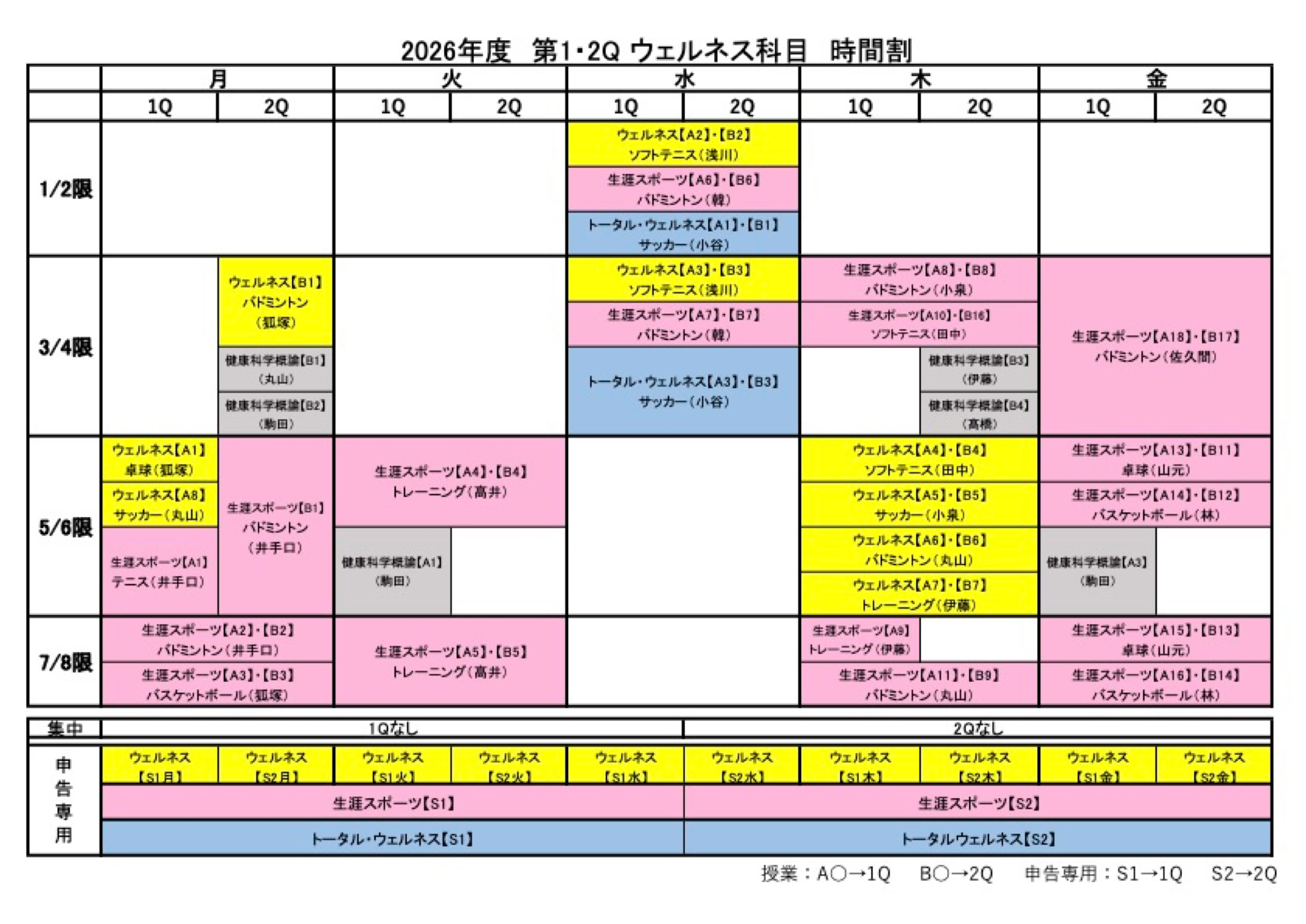 ・1Q:ウェルネス実習・S1金(申告専用)、